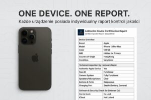 We provide a report for each device, showing full details of its condition, features and IMEI.